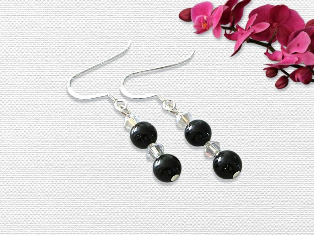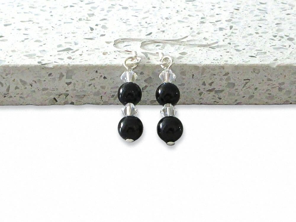 Black Onyx, Premium Crystals & Sterling Silver Earrings