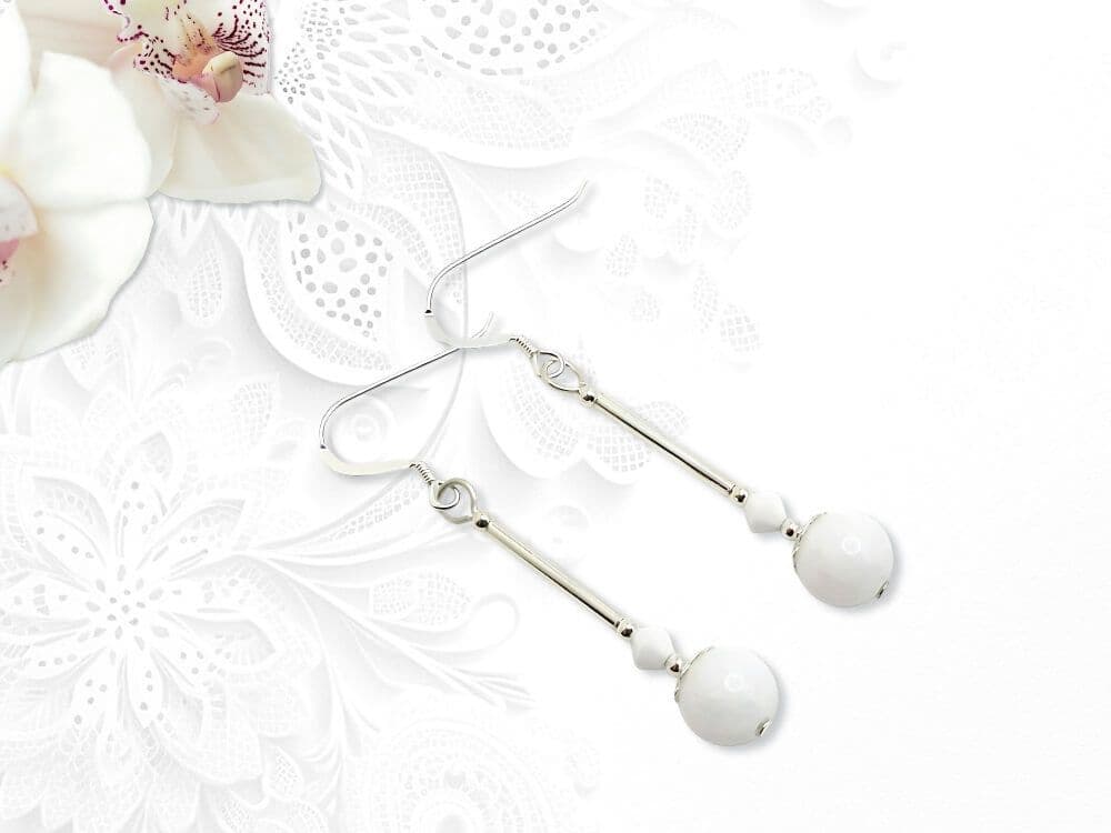 Bright White Agate & Sterling Silver Earrings