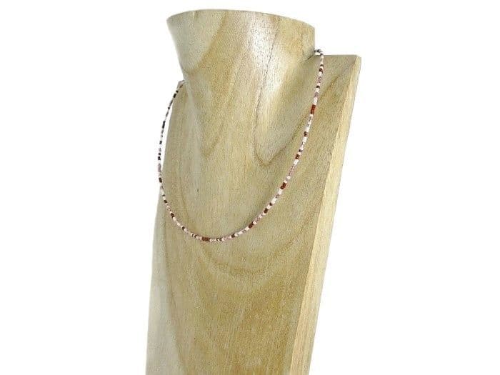 Add a pop of colour and spark to your wardrobe with this ultra-slim Burgundy Red, Pink & White Seed Bead Choker / Necklace!