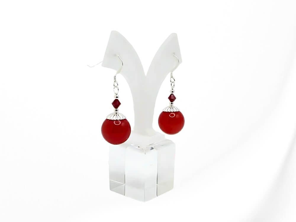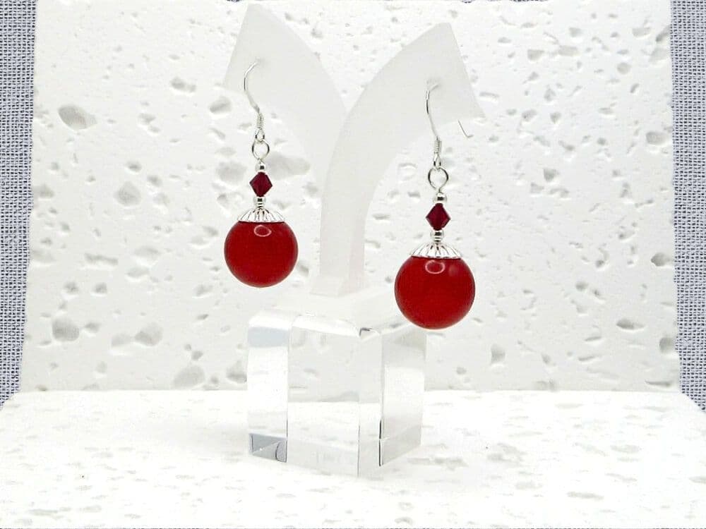 Introducing these striking red Jade chunky earrings, a must-have statement accessory for any fashion-forward lady. These earrings feature large 14mm red jade beads, carefully handcrafted with Sterling Silver for a wonderful contrast & highest quality red crystals from Austria for a luxurious finish. This original design combines elements of wisdom, serenity, and purity, making these earrings not just a fashion statement, but a meaningful piece of jewellery that aligns with your inner self.