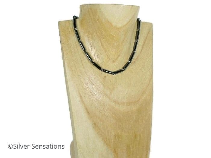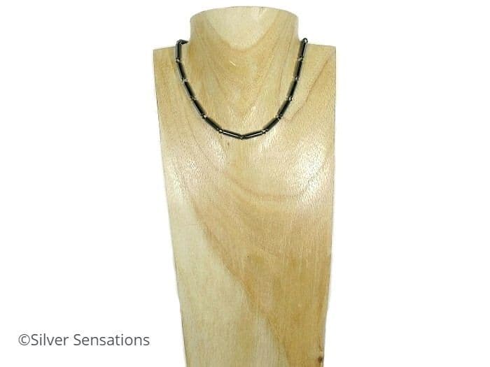 Hematite Tubes & Swarovski Crystals Sterling Silver Slim Necklace