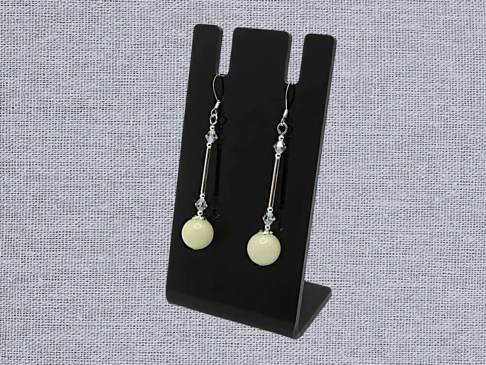 With a drop of 49mm from the top of the coil on these high-quality, hallmarked ear wires, these earrings hang from strong Sterling Silver headpins. Their 1920s inspired design with a soft pastel shade make them a versatile accessory. They're so easy to wear & perfect for adding a touch of subtle elegance to any outfit, casual daywear or for a special occasion.