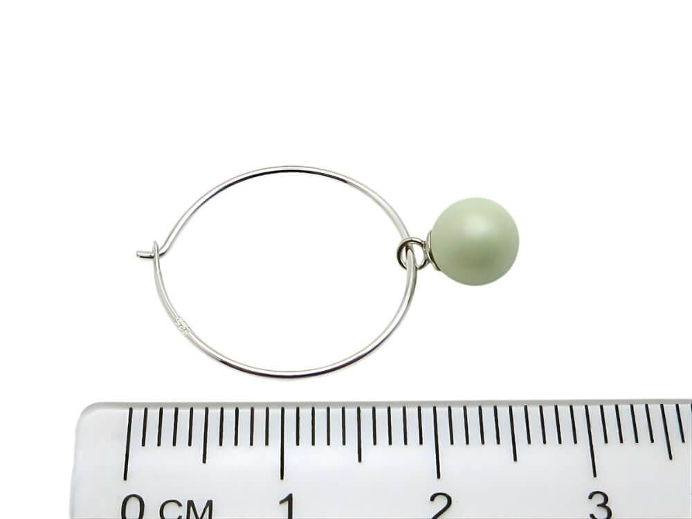 These feminine earrings are handmade using 6mm pastel green premium quality crystal pearls from the world respected crystal company in Austria. Each crystal pearl is attached using a solid Sterling Silver pendant bail which allows the drop to move independently. They hang from genuine UK .925 Sterling Silver hoops measuring approximately 18mm, with a total earring drop of around 25mm. A Complimentary Silver Polishing Cloth (Do Not Wash) is included with every Sterling Silver order.