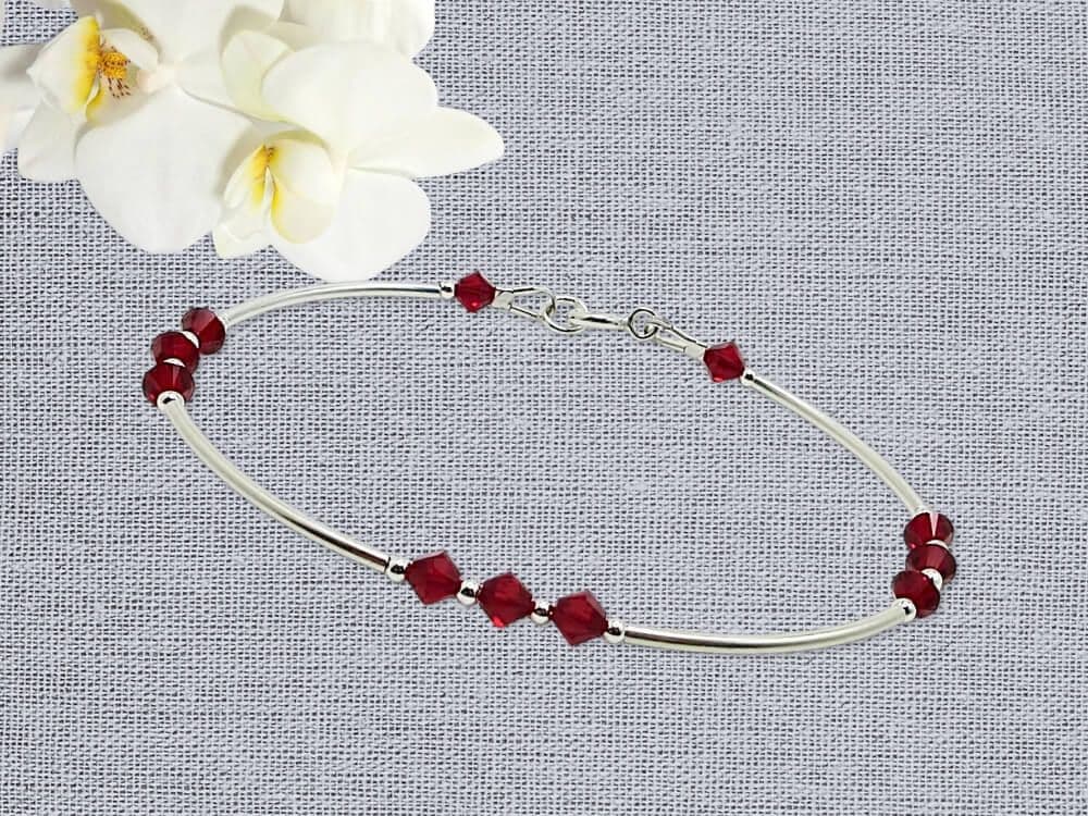 Dainty Sterling Silver Stacker Bracelet With Sapphire Blue Austrian Crystals